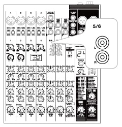 Nota: Como la ganancia (GAIN) de entrada no se puede ajustar cuando se conecta un mezclador de DJ al canal 5/6 (que es un canal estéreo), intenta enviar algún audio desde el mezclador de DJ. Si el sonido está distorsionado, baja la salida del mezclador de DJ. Sube el nivel si parece demasiado bajo.