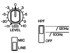 (1) Ajusta el nivel de los altavoces autoamplificados DXR12 principales. Pon el selector de entrada MIC/LINE de los DXR12 en "LINE". Ajusta el nivel (LEVEL) en la posición de las 12 en punto. Ajusta los selectores HPF (filtro de paso alto) para que coincidan con los ajustes de los selectores LPF (filtro de paso bajo) de los subgraves DXS15 (por ejemplo, ajusta ambos en 120 Hz).