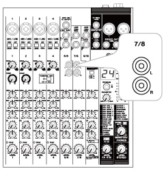 (7) Conecta un dispositivo de reproducción, como puede ser un iPod, al canal 7/8 del mezclador con un cable RCA.