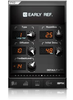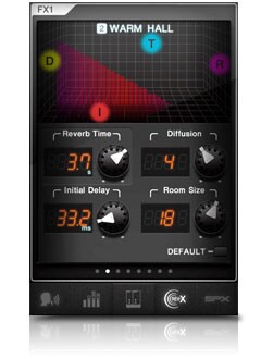 REV-X tiene ochos programas diferentes que se seleccionan y se exploran fácilmente pasando las páginas con el dedo. Los parámetros "Reverb Time" (tiempo de reverberación), "Diffusion" (difusión), "Initial Delay" (retardo inicial) y "Room Size" (tamaño de sala) pueden ajustarse para cada programa utilizando los controles específicos o el visor gráfico de la interfaz de MGP Editor.