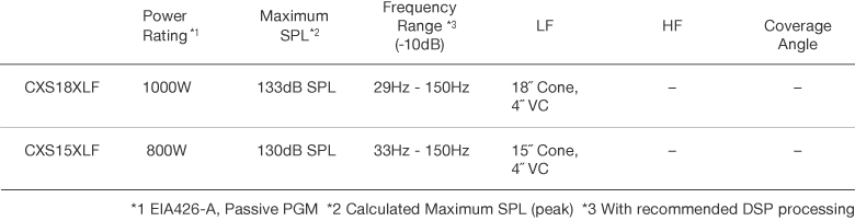 La serie CXS XLF consta de dos subgraves pasivos, el CXS18XLF (de 18 pulgadas) y el CXS15XLF (de 15 pulgadas), que pueden ampliar la frecuencia baja del sistema hasta 29 Hz iniciales para una capacidad de LF palpitante. Los conectores Neutrik speakON NL4MP proporcionan una conectividad segura, fiable y flexible. Equipado con dos conectores de entrada/paralelo para múltiples subwoofers más un conector de salida único para una configuración flexible con altavoces CZR de rango completo o configuración en modo cardioide. Es capaz la conexión más sencilla con un solo cable speakON de 4 polos.