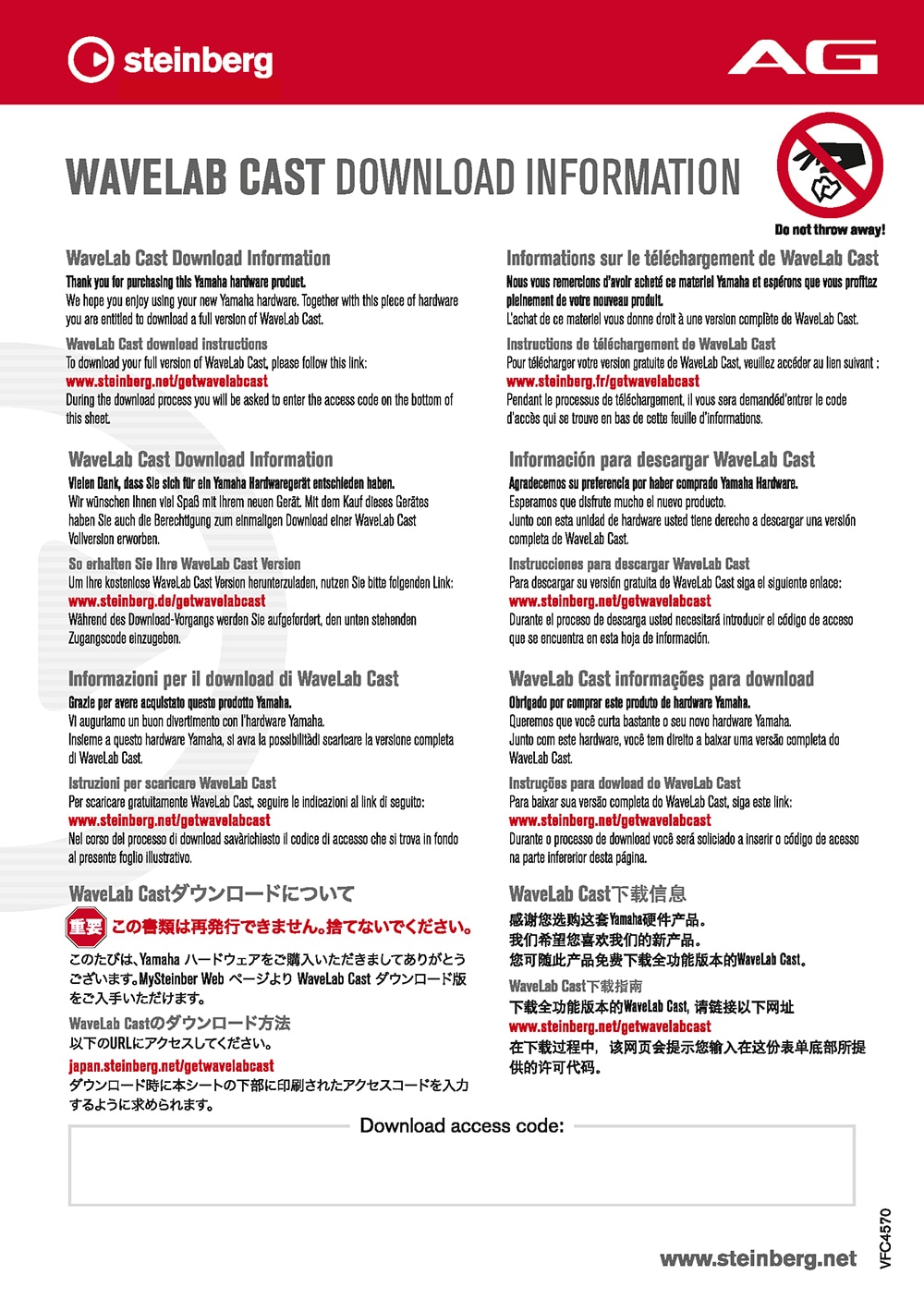 To download and activate Cubase AI and WaveLab Cast, use Steinberg Download Assistant.