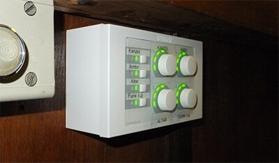 For more refined control, a wall-mounted DCP4V4S control panel and iPad running ProVisionaire Touch feature on/off and volume controls for the pulpit and altar microphones, the induction loop and overall level of the four wireless microphones.