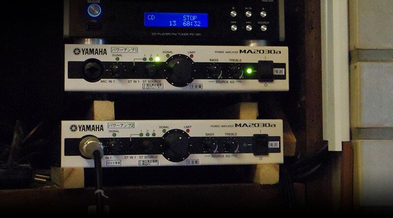 I have a second system that is independent from the background music system, specifically for microphone input, video playback from PC, and watching sports. The power amplifier is a Yamaha MA2030a, which makes using a microphone easy.