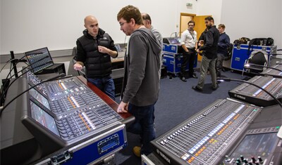 Cuando se entregó el sistema RIVAGE PM10 durante octubre, Chris Irvine, Tom Rundle y Reece Stead de Yamaha se dirigieron a las instalaciones de Blitz en Elstree, Londres, para mostrar algunas de sus funciones más profundas. El equipo de Blitz también podría compararlo con las otras mesas de Yamaha de la compañía, PM1D, ¡que aún funciona perfectamente casi 20 años después de su introducción!
