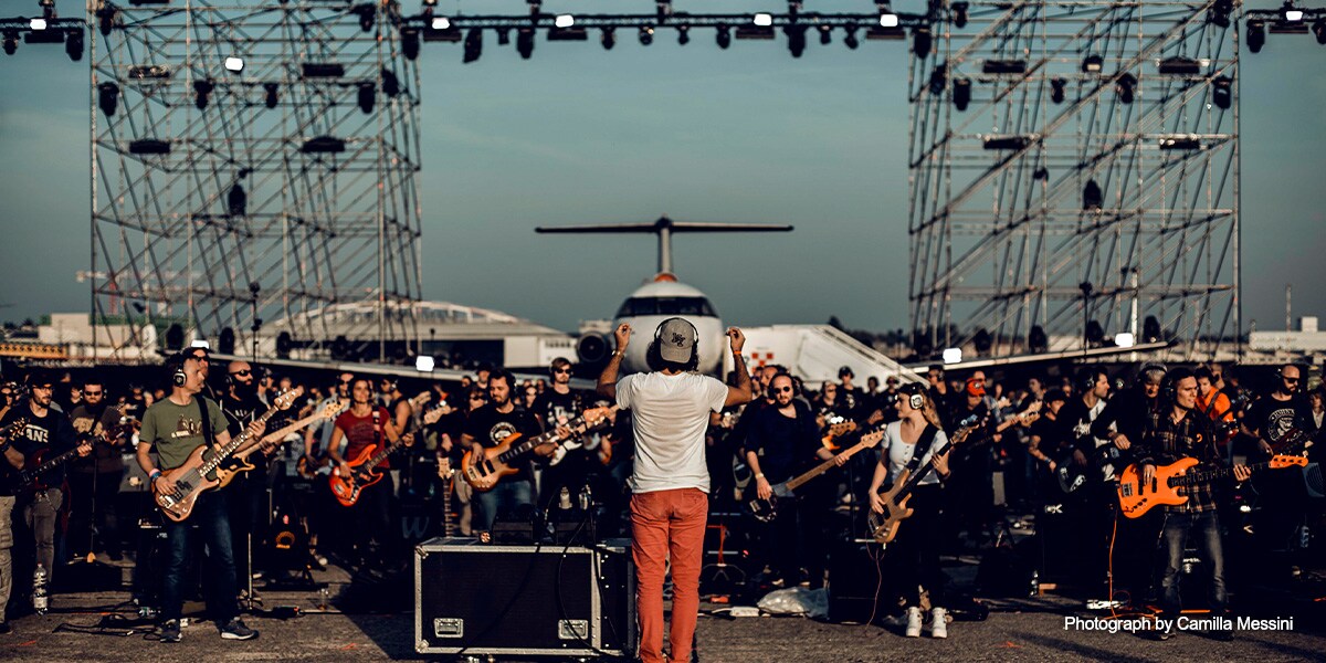 Every October for the past five years, over a thousand musicians have gathered together in Italy to perform as the ‘biggest rock band in the world’. Yamaha digital mixing has featured each time, with a RIVAGE PM10 digital mixing system making its debut in 2018. This year the event moved to Linate Airport, Milan, where a RIVAGE PM7 system was added for the first time.