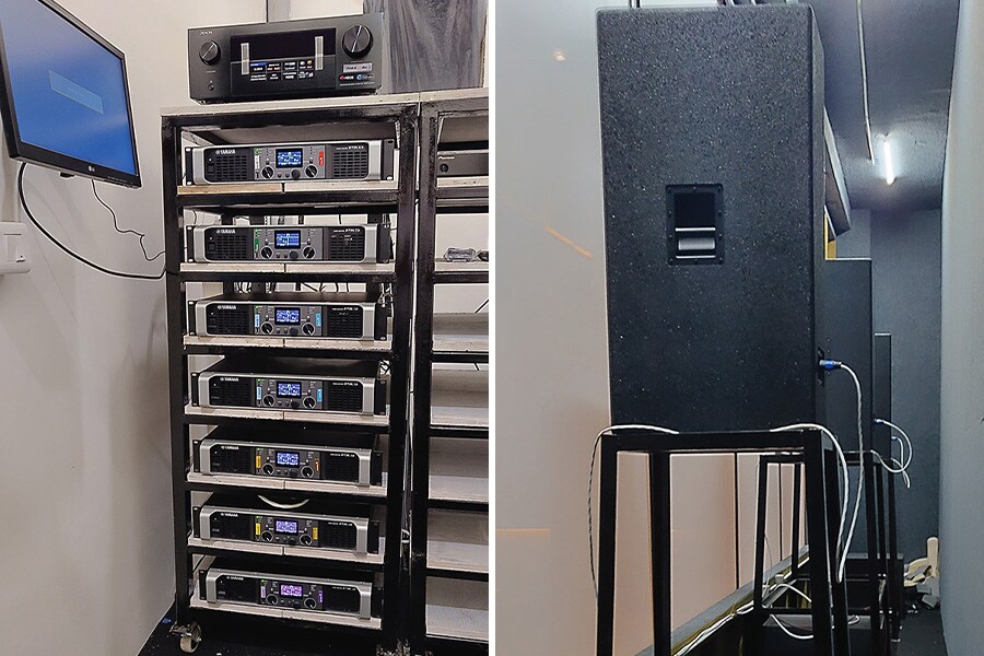 En Pradhyuman Royal Heights un mini-cine de 82 asientos con cómodas sillas reclinables es una pieza central de las instalaciones sociales del complejo. Se instalaron altavoces bidireccionales Yamaha R215 y subgrave de baja frecuencia extendida DXS18XLF como sistema frontal L-C-R, con seis pares de altavoces bidireccionales de montaje en superficie VXS8 para sonido envolvente y cuatro pares más de altavoces de techo VXC8 para el sonido envolvente Dolby Atmos. El sistema está alimentado por cinco amplificadores Yamaha PX3, uno PX5 y uno PX8, que cuentan con funciones de procesamiento flexibles interna para una conformación óptima del sonido.