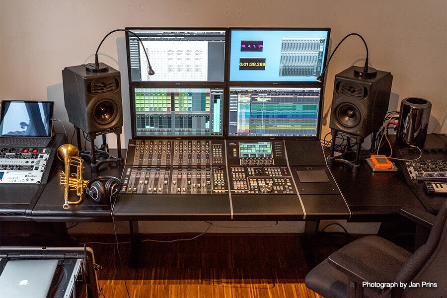 Después de 34 años como solista de trompeta y fliscorno de la Banda de Marines de la Marina Real Holandesa, mucha gente podría querer tomarse la vida un poco más despacio. Pero Nanouck Brassers está más ocupado que nunca, trabajando como compositor, arreglista, productor, ingeniero de grabación y mucho más. Gran parte de su trabajo se lleva a cabo en un estudio casero recién terminado en Den Haag, donde un sistema Yamaha Nuage y Steinberg Cubase hacen que trabajar en grandes proyectos de grabación sea rápido e intuitivo.