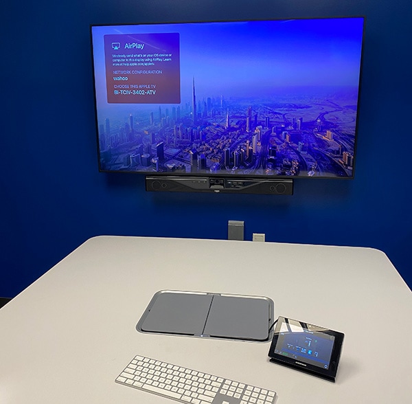 The CS-700 not only resolved the poor audio issues that the Biocomplexity Institute experienced, but also the lack of interoperability with Crestron. The CS-700 features an open API ideal for integration with Creston and other commercial-grade room controllers. Horizon also installed USB switches, allowing users to connect their own laptop or device or use the in-room Mac Mini. A Crestron touch panel sits on the conference table and acts as the nerve center for the room. Users can control CS-700’s control volume, mute, and camera’s zoom, pan, tilt, and input functions directly from the touch panel, creating a simple conferencing experience. Staff can launch Zoom in seconds, with all the controls they need right at their fingertips.