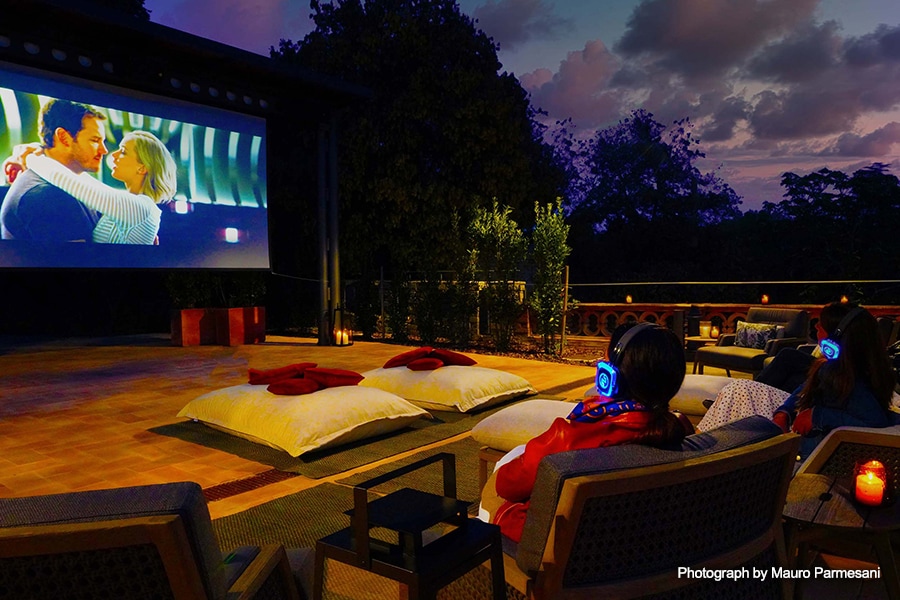 The cinema will initially be dedicated to resort customers, with film screenings and streaming of music festivals, plays and more scheduled for the 2021 season. It will also be available to rent for special occasions, corporate and formal events, accompanied by menus designed by the resort’s chef Davide Pizzo.