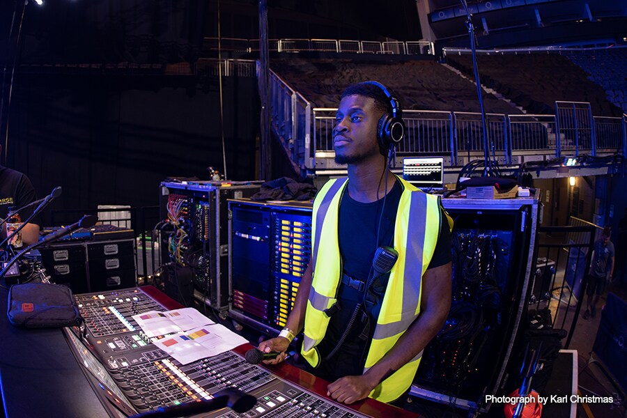 Monitor engineer Duriel Mensah checks the onstage sound with StageMix