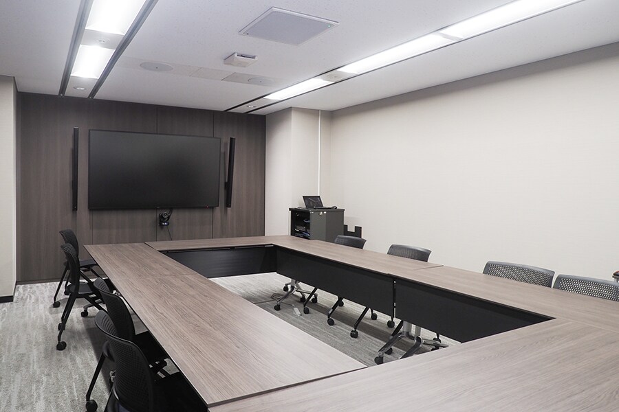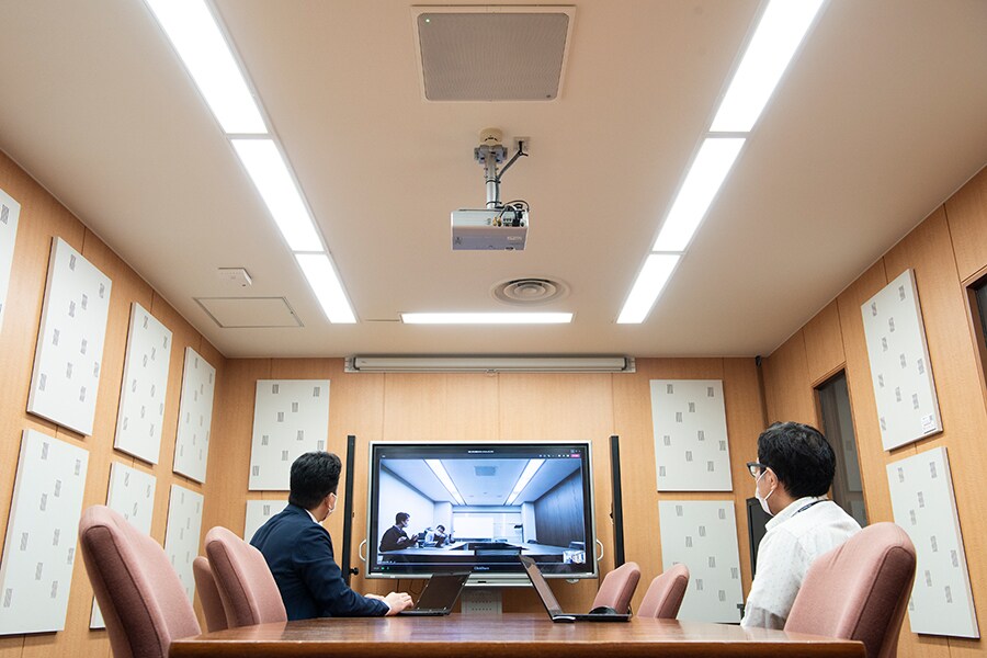 Toyoura: We usually conduct internal meetings and teleconferences with our trading partners. It is not a specialized demonstration room, but if you contact us, you can come and see the actual machine for yourself at the Takanawa Office. As in this time, you can experience the audio quality and performance of "ADECIA" while being connected to the demonstration room of Hakozaki and the Takanawa Office, and you can connect with the customer's teleconference room to get a real feel for the great performance of the microphone. Furthermore, a tone panel, called TCH, is installed in the teleconferencing room at Yamaha's Takanawa Office. This is just a 3-cm thick panel that can be installed to improve the audio of the room. You can experience these effects.