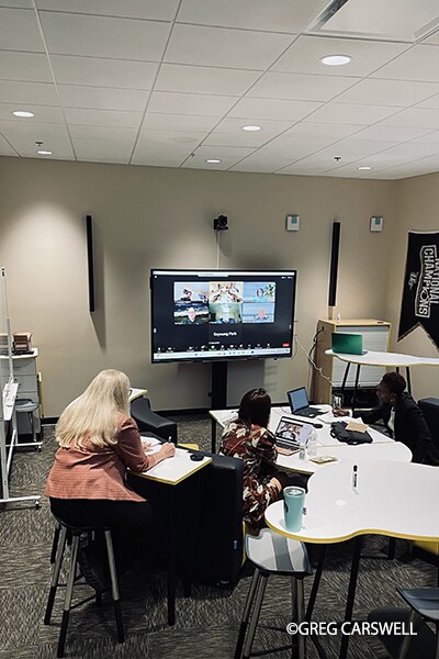 “We regularly hold hybrid meetings with students, their families and educators who are off-campus or traveling,” says Christine Parsons, TJEEI Program Manager. “With the existing set-up. presenters would have to pass the microphone back and forth, the back of the room would struggle to hear while the front was overwhelmed by loud audio and remote participants found the sound extremely challenging.”