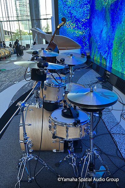 Yamaha has been a world leader in self-playing pianos since the 1970s, the drum kit has a vibration speaker attached to each drum and cymbal, plus there’s a double bass with a vibration speaker attached to the bridge. This concept is what Yamaha calls Real Sound Viewing, a system which preserves and reproduces artist performances exactly as they were originally played.