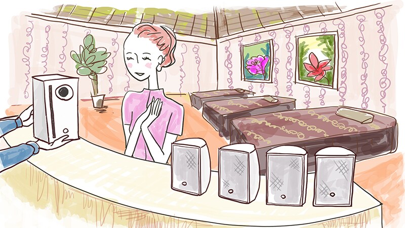 Los subwoofers son altavoces que mejoran el rango de baja frecuencia. Un sonido mejorado en el rango de baja frecuencia hará que la música suene muy bien en general, mejorando significativamente la atmósfera en cualquier espacio. Ya sea que se trate de un espacio relajado o muy animado, si está tratando de crear un área de alta calidad que levante el ánimo de los huéspedes, le recomendamos que instale subwoofers.