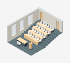 Las aulas de hasta 100 m² se pueden cubrir con una solución de techo ADECIA que consta de dos micrófonos RM-CG, un procesador de conferencia RM-CR y altavoces VXL1-16P para una reproducción de sonido transparente.