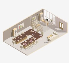 Las salas de juntas de hasta 100 m² están perfectamente cubiertas por una solución de techo ADECIA con dos micrófonos de techo RM-CG. Con cuatro haces por RM-CG, esta configuración puede capturar hasta voces de 20 personas. Los altavoces Dante VXL1-16P ofrecen una reproducción de sonido clara.