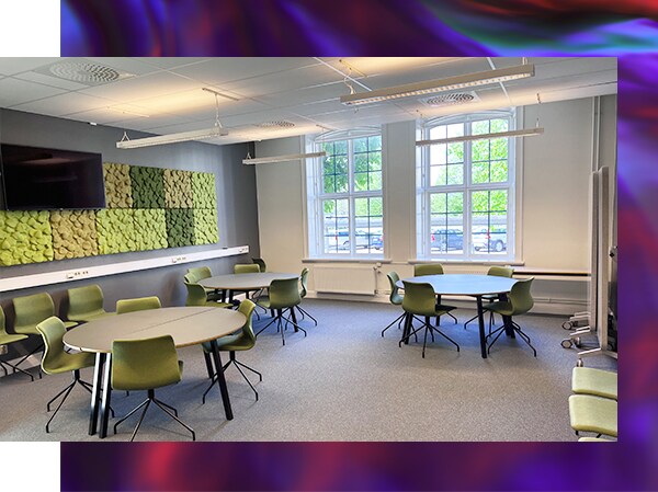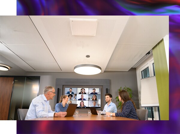 La solución de techo ADECIA es la mejor opción para salas de reuniones de tamaño mediano de hasta 50 m² donde se llevan a cabo talleres, el diseño de la sala cambia a menudo y no se deben ver cables u otros equipos.