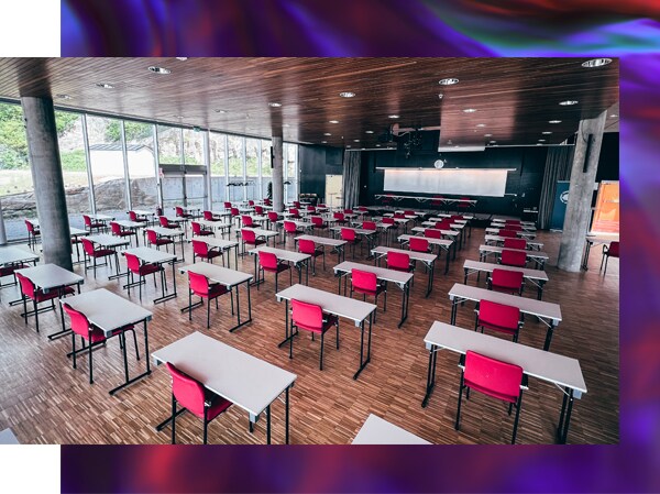 Las salas polivalentes que ocasionalmente organizan reuniones espontáneas están idealmente equipadas con una solución combinada de techo y mesa ADECIA.