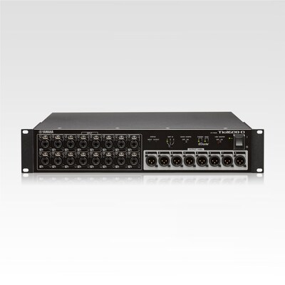 El Tio1608-D es un rack de E/S equipado con protocolo de red Dante, con 16 entradas de micrófono/línea y 8 salidas de línea.