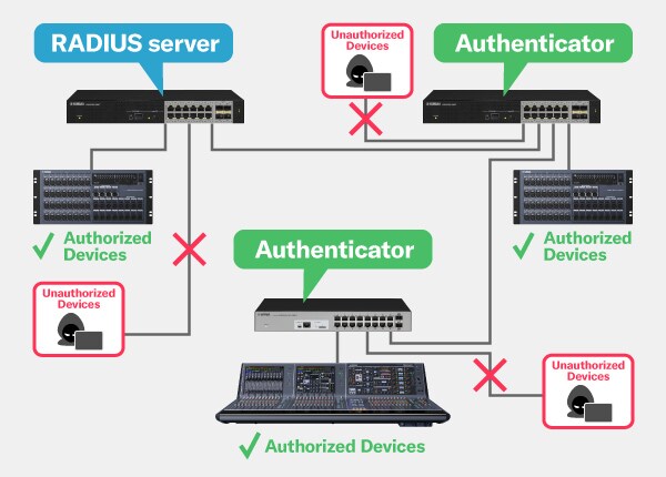 To ensure security, all newly released switches are compatible with RADIUS servers . By combining switch MAC authentication with RADIUS server functions, all connected devices can be managed centrally, with only connections from registered devices allowed.