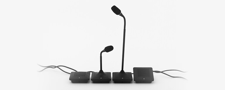 Micrófonos con cable de sobremesa y de cuello de cisne con control local y externo