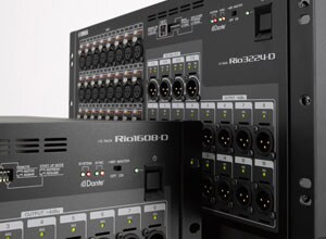 El Rio3224-D maneja la E / S del lado del escenario, mientras que las unidades Ri8-D sirven como un rack de entrada portátil en el escenario y en la posición de la consola. Un Ro8-D se encuentra en la sala de amplificación del hall o del teatro, y transmite audio a los amplificadores del sistema.