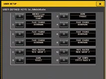Los parámetros principales del Canal Seleccionado se asignan a los controles ubicados a la derecha de la pantalla, para poder tener acceso inmediato en cualquier momento. Además de las teclas definidas por el usuario, a las que se pueden asignar los parámetros libremente, otra de las funciones tradicionales de las mesas de mezclas digitales de Yamaha, las mesas QL también tienen controles de pantalla definidos por el usuario que proporcionan la misma libertad de asignación para los parámetros variables. Utilizados de manera combinada, los controles definidos por el usuario y las teclas definidas por el usuario aumentan notablemente la velocidad y la eficacia de operación.