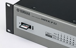 El MRX7-D cuenta con una ranura para tarjetas Mini-YGDAI donde pueden instalarse tarjetas compatibles con una gran variedad de formatos de audio, proporcionando una capacidad de expansión de hasta 16 canales de E/S.