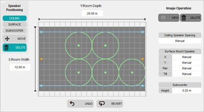 El modo ADVANCED calcula rápidamente el número de altavoces necesarios para un rendimiento óptimo de acuerdo con una configuración más flexible y detallada especificada por el usuario. Varios altavoces de techo, altavoces de montaje en superficie y subwoofers están disponibles en este modo.