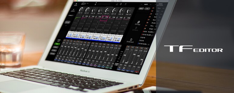 La aplicación TF Editor para ordenadores Windows y Mac proporciona una interfaz completa para la edición y la configuración offline de las mesas TF, con capacidades para gestionar las escenas y las preconfiguraciones, además de la comodidad que supone introducir los nombres de los canales con el teclado del ordenador. Además de poder configurar la consola offline en el lugar y momento que mejor convengan, el software TF Editor se puede utilizar online al mismo tiempo que las aplicaciones TF StageMix y MonitorMix. En un PC que tenga Windows 8 y pantalla multitáctil se puede trabajar con los mismos gestos manuales que en la propia mesa. Y si se utiliza wifi, un PC puede funcionar como un dispositivo práctico y cómodo para mezclar a distancia. Es posible conectar hasta tres dispositivos con TF Editor y StageMix funcionando al mismo tiempo.
