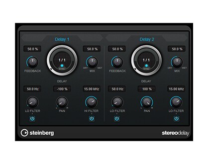 StereoDelay tiene dos líneas de delay independientes que utilizan ajustes de tiempo de delay basados en el tempo o especificados libremente.