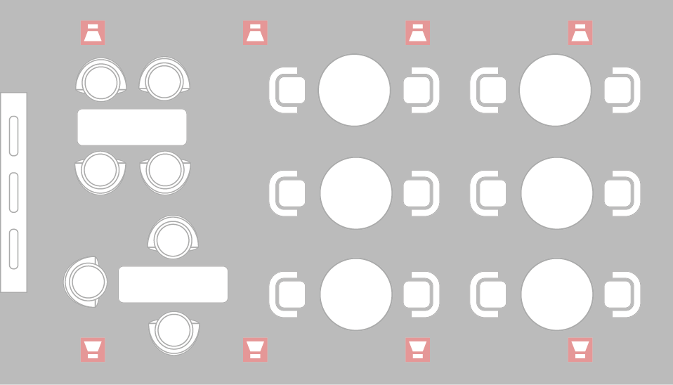 A larger space calls for a flexible and expandable system - all the tools that you need to create a custom solution for any size of venue. Here we have combined the ADECIA solution with the DM3 audio mixer, and some simple automation. The use of Dante networked audio means that it's incredibly easy to reconfigure your system for different events - or to scale up to include additional speakers or microphones. The speaker system provides you with room-filling sound, whether you're making a presentation, playing media, or presenting a live performance of music or theatre.