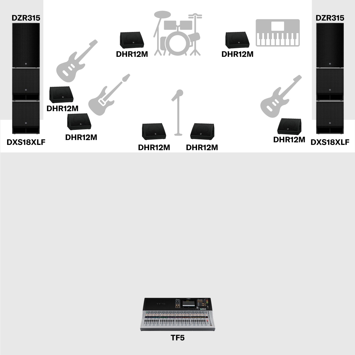 This sound reinforcement system is suitable for venues of up to several hundred people. Yamaha offers an extensive lineup of compact yet powerful products featuring comprehensive functions that can accommodate an impressive range of venue sizes, conditions, and applications allowing you to easily create cost-effective solutions according to your budget.