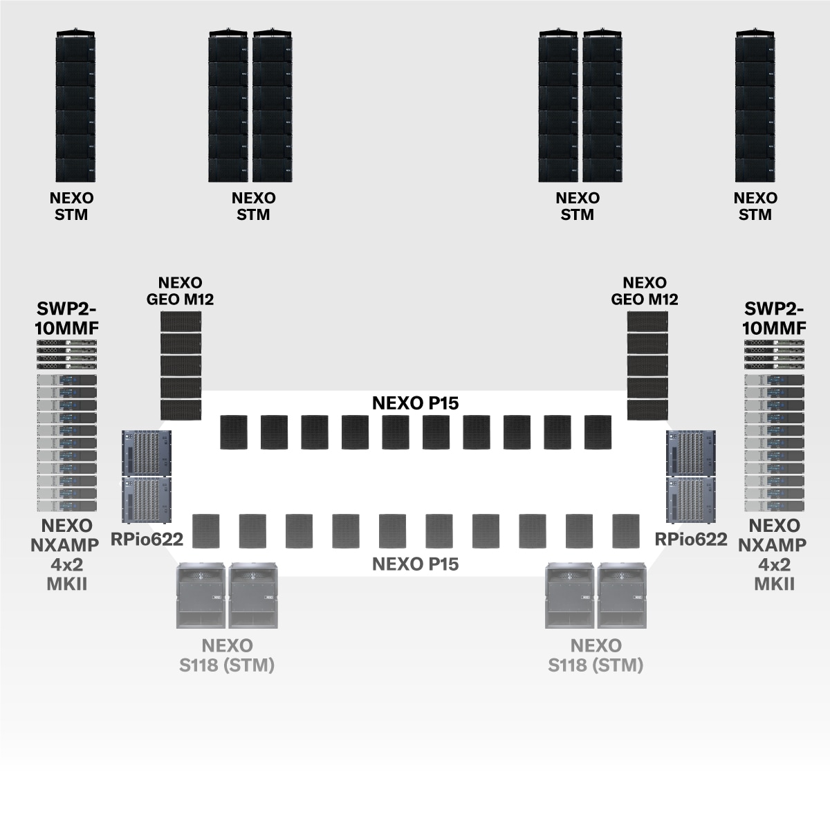 Due to its compact size, flexible operation, and superior sound quality, Yamaha’s flagship RIVAGE PM mixing console has become a live sound reinforcement industry standard, winning international acclaim from some of the most popular artists touring today. NEXO’s STM line array speaker systems act as the perfect complement, flexibly supporting the RIVAGE PM as a scalable, powerful solution that can be adapted to meet the demands of various live venues and deliver a memorable sonic experience for everyone in attendance.