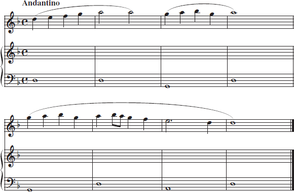 1. As the examiner plays the melody, candidates listen while looking at the score. The bass notes are given.
