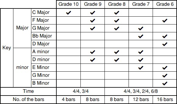- For the blank parts of the score, candidates are expected to play their own arrangement based on the pattern presented at the beginning.