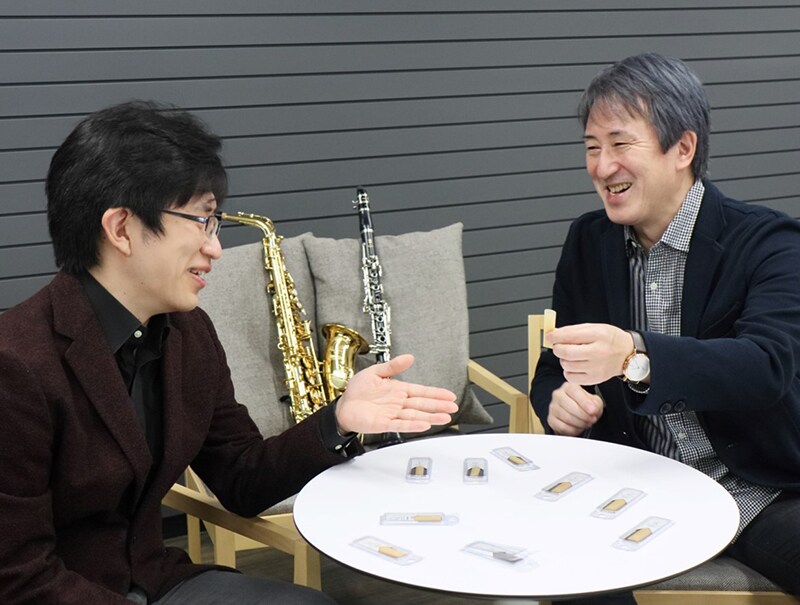 Toru: Hasta ese momento, no me había planteado que los principiantes tocaran con cañas sintéticas, pero pensé: ¡tiene todo el sentido! Cañas que los principiantes puedan tocar de forma fácil y que les resulten naturales y sencillas de usar... ¿Es que no existen aún esas cañas sintéticas?