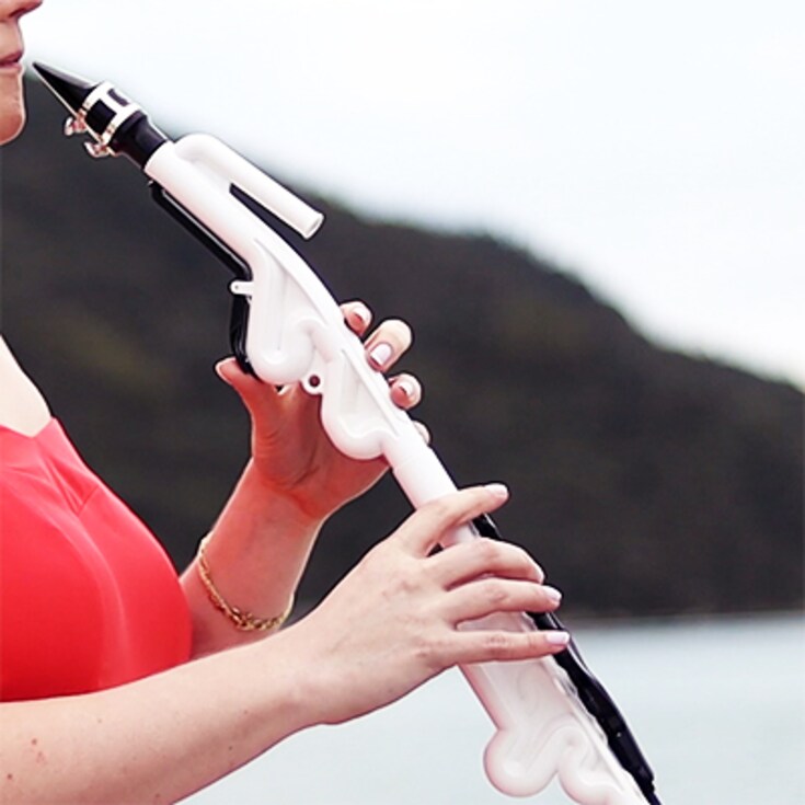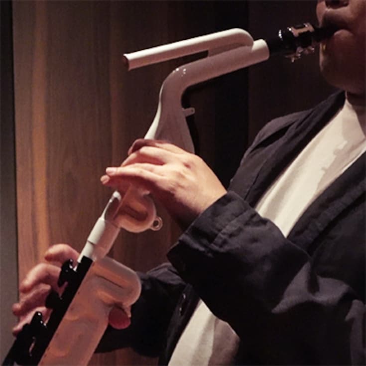 Innovation and creativity do not come about by accident. Without going into the technical details, the unique shape of the instrument, which produces the sound of a full-size saxophone with much less body, is the result of many years of research.