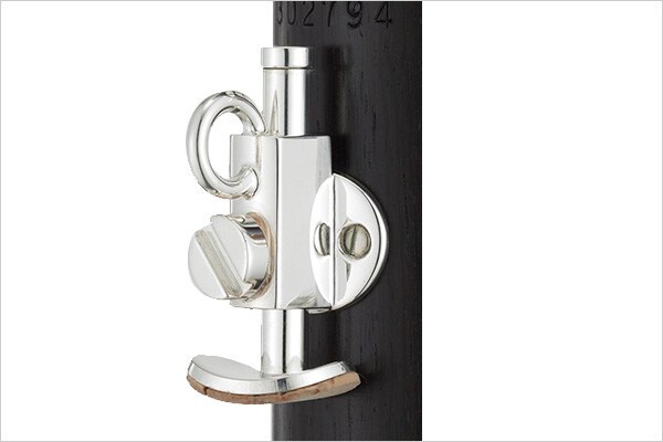 Se puede ajustar para que la digitación sea más cómoda para instrumentistas con manos pequeñas y se puede reajustar si es necesario a medida que las manos del artista crecen y se vuelve más competente. El apoyo del pulgar incluye también un anillo que se puede utilizar para colocar la correa cuando sea necesario.