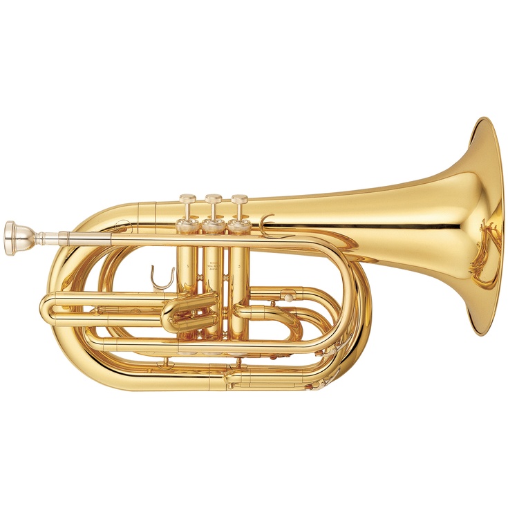El modelo YBH-301M es el instrumento perfecto para bandas de tambores y cornetas que no incluyen trombones. Puede imprimir a la banda una voz única, más oscura que la de un trombón y más brillante que la de un bombardino. ; un sonido muy intenso y fuerte. Además, el modelo 301M es un instrumento muy equilibrado y este equilibrio hace que sea más fácil de tocar y de manejar en las formaciones.