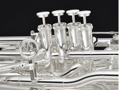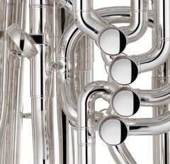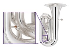 Estas cabecillas de válvulas grandes y contorneadas brindan una sensación de ajuste perfecto para que el funcionamiento de las válvulas sea suave y sin esfuerzo. Las válvulas también están dispuestas para coincidir con la curva de la mano del músico, lo que minimiza la tensión en los brazos y el cuerpo.