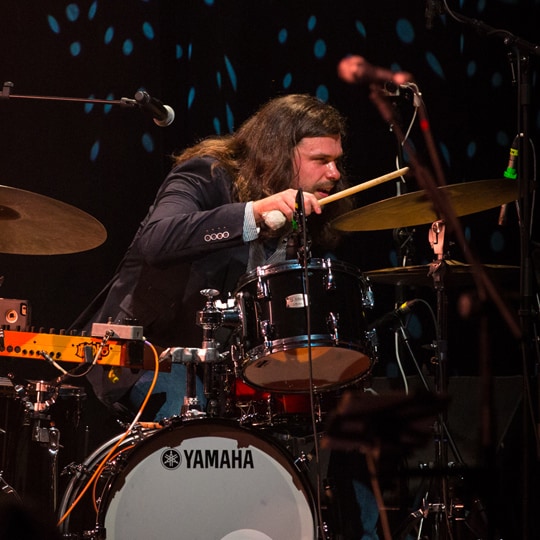 Overall has been working at the forefront of jazz for two decades, touring and recording as a sideman drummer with artists as varied as Geri Allen, Steve Coleman, Francis and the Lights, Yoko Ono, Peter Evans, and Gary Bartz. His work as a producer can be heard on albums by Theo Croker (Escape Velocity), Arto Lindsay (Cuidado Madame), and Das Racist (Sit Down, Man). He’s also featured as an emcee and DJ on drummer Terri Lyne Carrington’s latest project, Social Science.