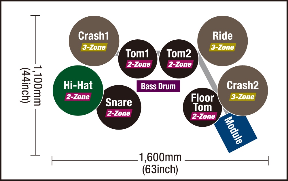 - Snare pad and ride cymbal are equipped with a hit point detection function