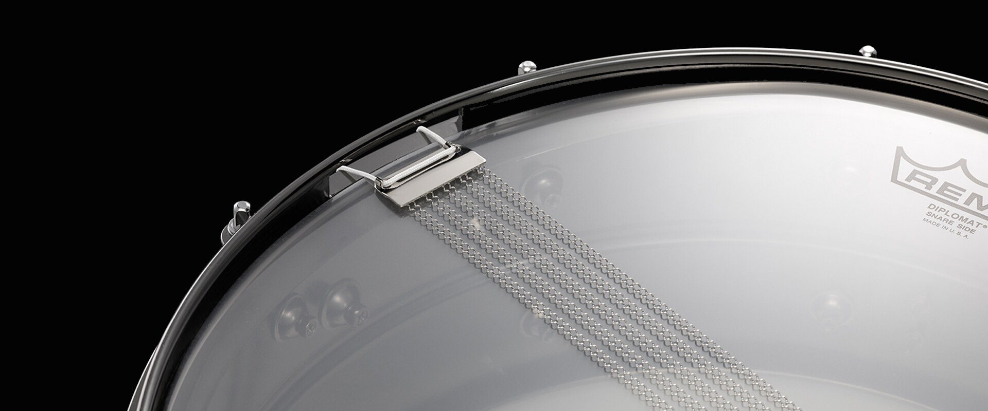 The Yamaha YSS1455SG snare features a 14" x 5.5" steel shell – equipped with a new Steve Gadd 10-strand wire, which enhances the snare articulation. Limited to 800 pieces worldwide, this snare drum's 1.2 mm steel shell exterior and the aluminum die cast hoops are set in a distinctive black nickel, Steve´s look of choice.