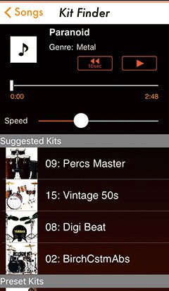 La función “Kit Finder” permite tocar sobre tus canciones favoritas de una manera rápida y fácil. Selecciona una canción de tu biblioteca de música a través del “Kit Finder”, y este te sugerirá un preset adecuado para esa canción.