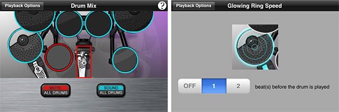 Los aros luminosos facilitan el ver qué elementos hay que golpear y cuándo, así puedes aprender a acompañar tus canciones favoritas. Golpea el elemento de percusión indicado cuando el aro luminoso aparezca en el elemento.
