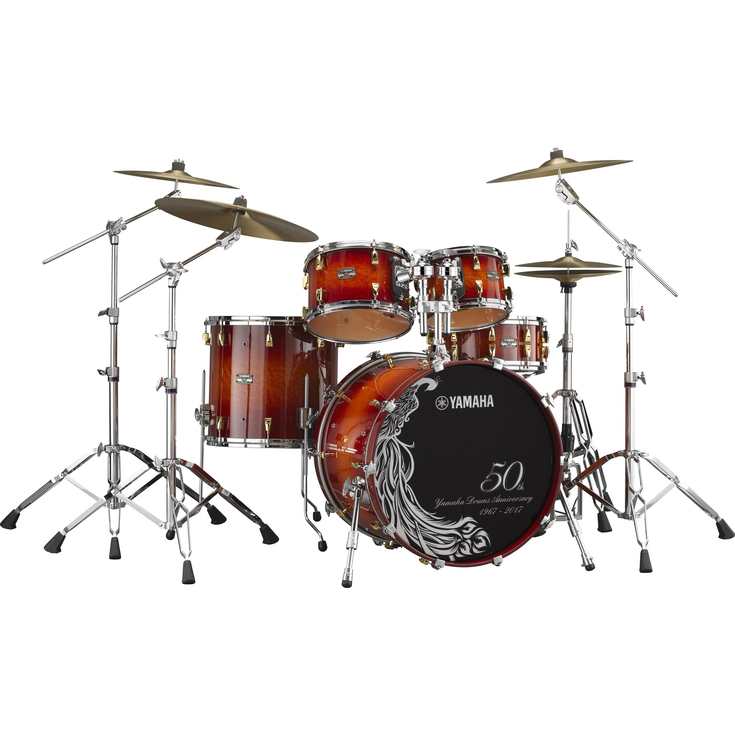 Basado en el famoso kit Absolute Hybrid Maple de Yamaha, el modelo 50 Aniversario se caracteriza por sus cascos con capas exteriores de dos variedades de preciosas maderas exóticas y sus bellotas hook doradas que recuerdan al venerado kit Maple Custom de antaño. Distintivos y parches frontales especialmente elaborados aportan un lujoso toque a estos kits de cinco piezas en una edición limitada de tan solo cincuenta unidades.
