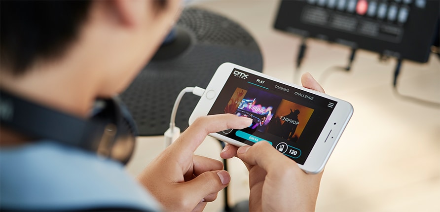La aplicación dedicada de iOS/Android, DTX402 Touch, te permite practicar de una forma más agradable y fácil de seguir. En la función Challenge Mode, toca sobre pistas de entrenamiento incorporadas como si fuera un juego. Una vez que completes la etapa final, recibirás un certificado de batería de Yamaha. También puede utilizar la función Editor para personalizar kits de baterías. La serie DTX402 también funciona con la aplicación Rec'n'Share iOS para que puedas practicar y grabarte con tu música favorita y compartirla rápidamente con tus amigos y redes sociales.
