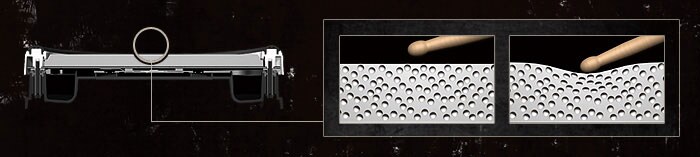 Después de más de 40 años fabricando baterías acústicas y adquiriendo un conocimiento profundo y detallado de la batería en el proceso, Yamaha ha desarrollado el DTX-PAD, un pad de batería electrónica de 10 pulgadas con un toque especial. La parte superior del parche está hecha de TCS (silicona celular texturizada). Al ajustar los tamaños y concentraciones de las pequeñas burbujas en el TCS, hemos creado dos tipos diferentes de pads, un pad de caja y un pad de timbal, que son perfectos combinados. Cuando desarrollamos este pad, lo hicimos evaluar repetidamente por los mejores bateristas del mundo. El sentido detallado de la perfección de estos bateristas se refleja en este pad de batería. Como resultado, el XP100SD funciona magníficamente, como en una batería acústica, y su tacto es tan real que los bateristas profesionales se sienten de maravilla cuando lo descubren por primera vez.